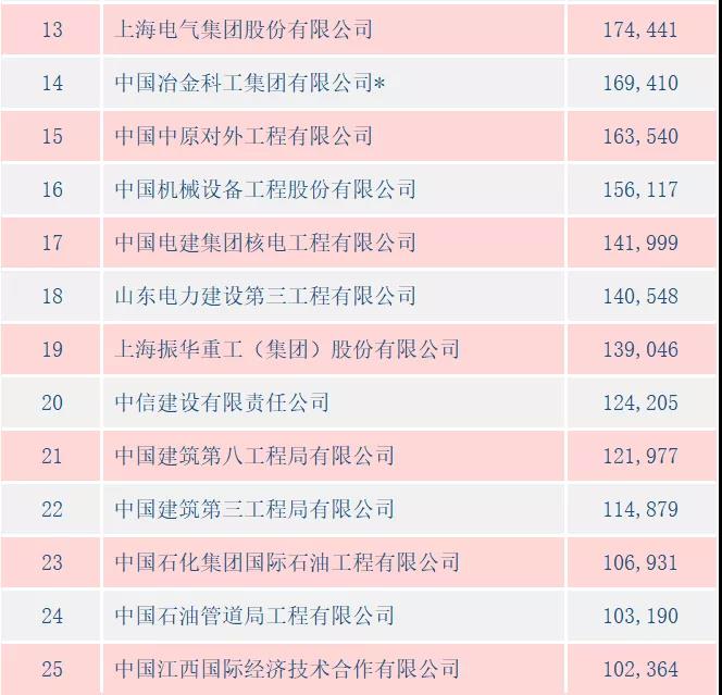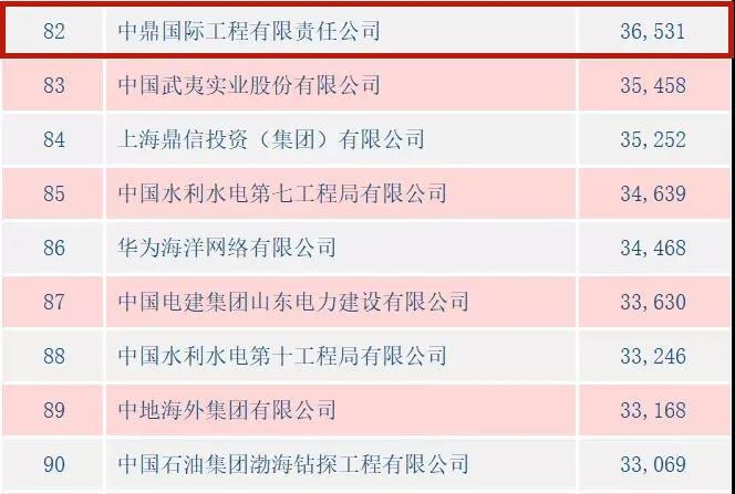 2月24日,商务部发布2020年中国对外承包工程100强榜单,中鼎国际连续第三年入选,在对外承包完成额100强榜单中位列82名,比上年度95名前进了13位;首次进入对外承包新签额100强榜单,位列100名。